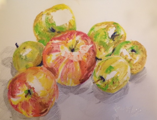 - Apples; sketchbook/ water soluble pencils