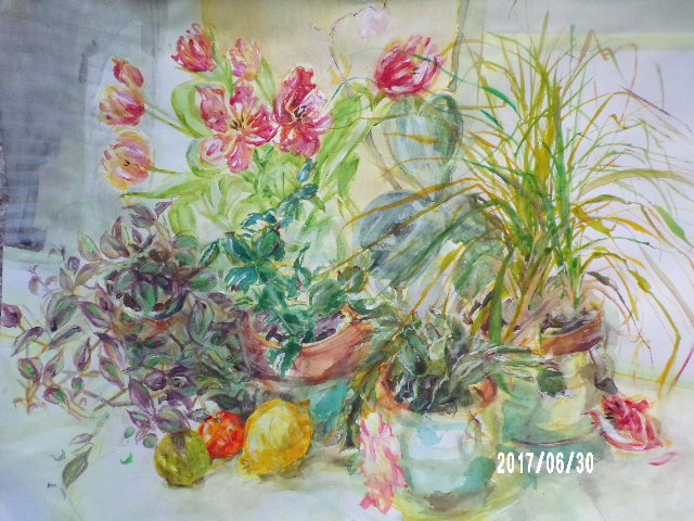 - Still Life with Lemons/ watercolour and acrylic