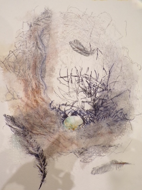 - The Blackbirds’ Nest and Red Feather/ pen and watercolour