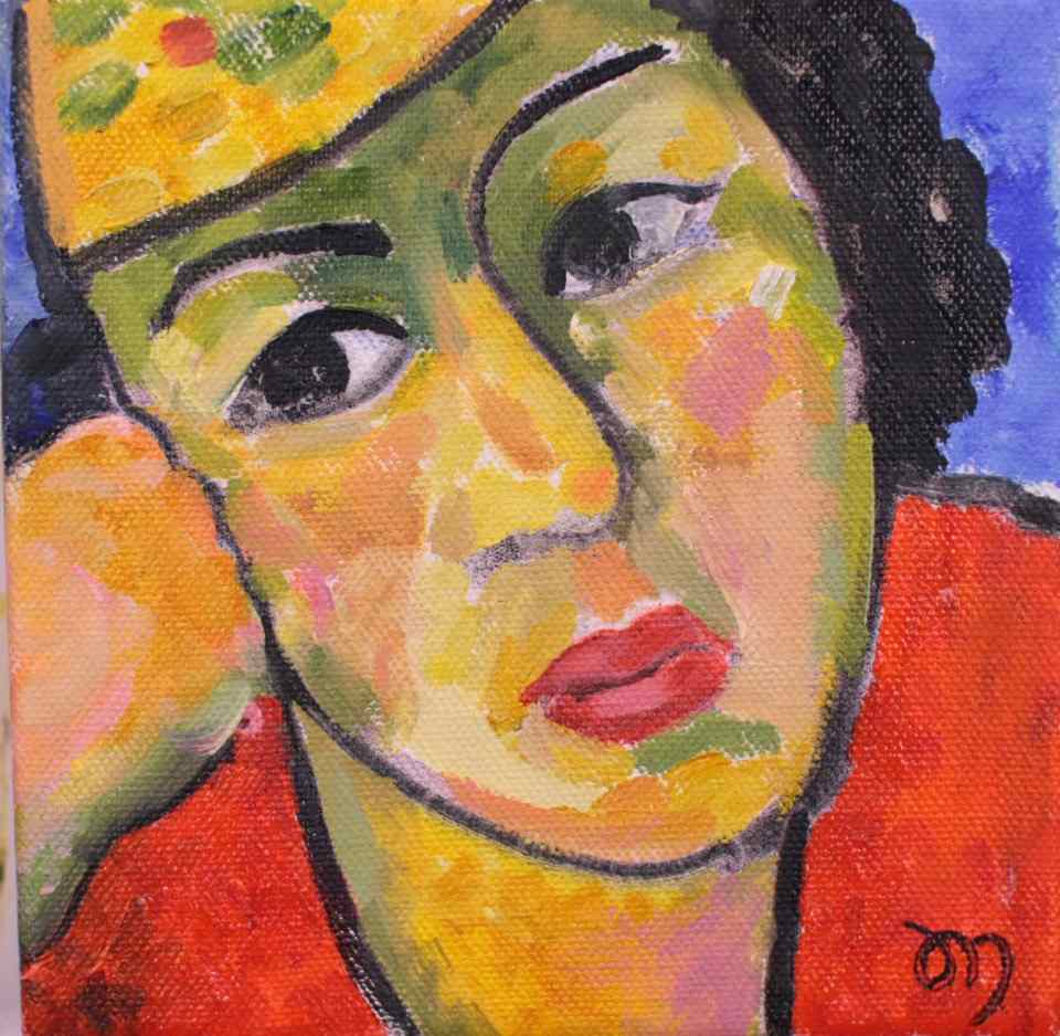 “yellow hat”; oil, 15x15cm
